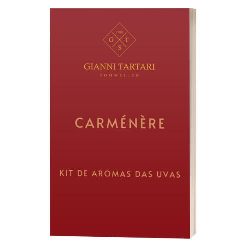KIT DE AROMAS DAS UVAS - CARMÉNÈREDescubra a sedutora riqueza olfativa da Carménère com nosso Kit de Aromas das Uvas, uma seleção primorosa de 12 aromas que trazem o caráter único desta varietal chilena de coração. Experimente a voluptuosidade da Ameixa Preta e a doçura exótica da Romã da Turquia, entrelaçadas com o toque cremoso da Baunilha e Chocolate. A riqueza do Figo em Calda e a vivacidade da Framboesa são complementadas pela suculência da Goiaba, criando um perfil de sabor profundamente frutado.A sofisticação é acentuada pelo aroma terroso do Sândalo, o frescor da Menta e a complexidade da Madeira Nobre, enquanto a Amora adiciona camadas de sabor e a Arruda um toque herbáceo distinto. Este kit é uma ferramenta para enriquecer o paladar e um guia olfativo para os amantes do vinho explorarem os territórios vinícolas do Chile e além.Cada essência é uma nota na partitura de sabores que faz da Carménère uma experiência de degustação inesquecível.Explore os aromas elaborados artesanalmente para o nosso Kit de Aromas das Uvas, que inclui um livreto detalhado sobre a formação dos aromas nos vinhos, ensinando-o a identificar e apreciar cada nuance. Acompanha sugestões de harmonização para enriquecer sua experiência gastronômica. O kit também conta com um cartão que lista os aromas característicos da uva Carménère, um bloco com fitas olfativas para incrementar sua experiência sensorial e uma mini saca de café em grãos, perfeita para neutralizar seu olfato entre degustações. Este conjunto é ideal para amantes do vinho que desejam aprofundar seus conhecimentos e aguçar seus sentidos.